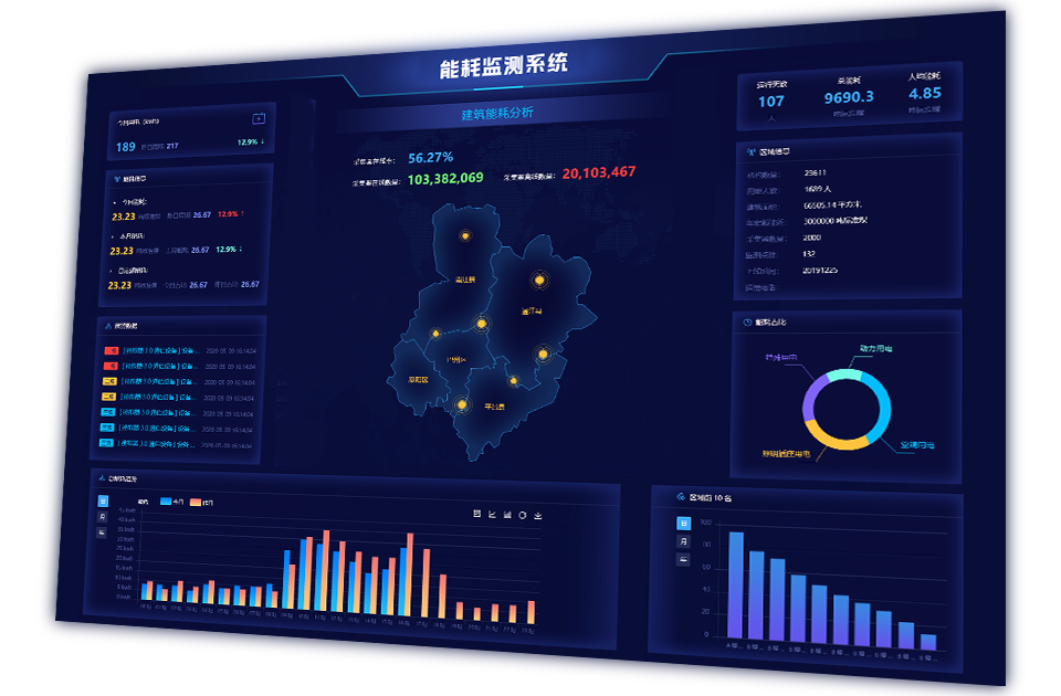 豐富的可視化數(shù)據(jù)模型和圖表,一屏全覽能源消耗情況。