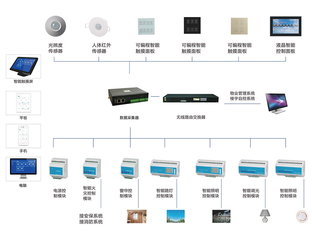 與其他系統(tǒng)聯(lián)動(dòng)控制,如BA系統(tǒng)、消防系統(tǒng)、安防報(bào)警系統(tǒng)、窗簾系統(tǒng)、空調(diào)系統(tǒng)等,實(shí)現(xiàn)全屋智能化控制。